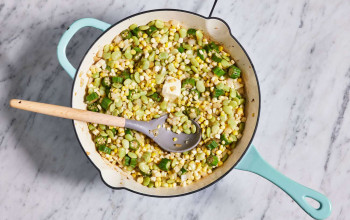 Creamy Succotash Featuring Bacon, Thyme, and Chives