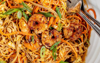 Shrimp and Rice Noodles in Spicy Peanut Sauce