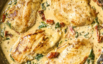 Quick Tuscan Chicken with Farro in a Skillet