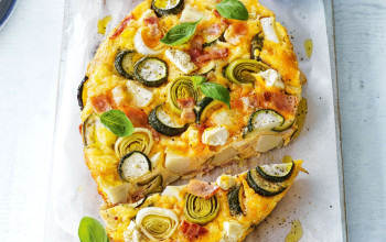 Cheesy Vegetable and Bacon Frittata Made with Egg Whites