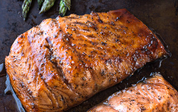 Salmon with Bourbon Glaze and Oven-Baked Asparagus