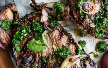Tender Grilled Lamb Shoulder Chops Accompanied by Mint Jelly