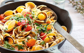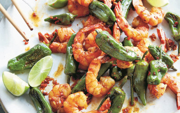 Garlic-Infused Shrimp Primavera Featuring Shishito Peppers