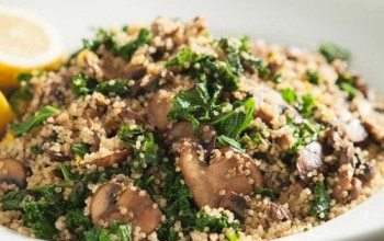 Mushroom and Kale Stroganoff Served Over Quinoa
