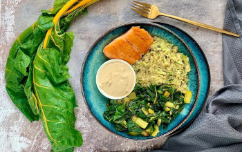 Salmon and Swiss Chard Quinoa Bowl