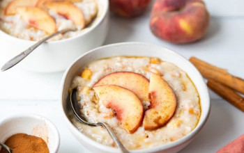 Brown Rice Pudding Topped with Peaches
