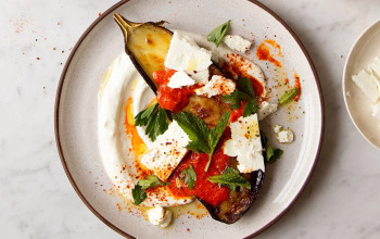 Roasted Eggplant and Bell Peppers with Feta Cheese