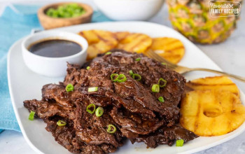 Teriyaki-Glazed Beef Tongue Served with Pineapple