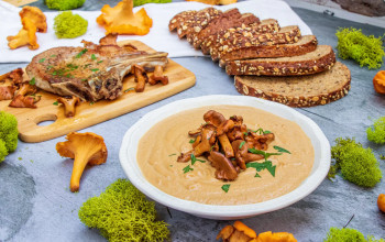 Pork Cutlets Served with Creamy Chanterelle Sauce and Dill Potatoes