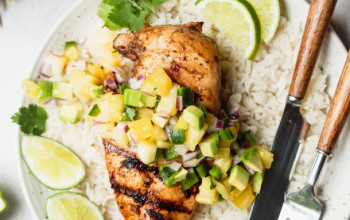 Blessed Guacamole Soup Accompanied by Grilled Lemon-Jerk Chicken